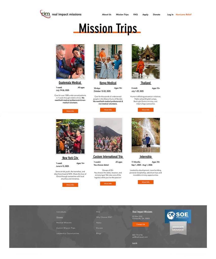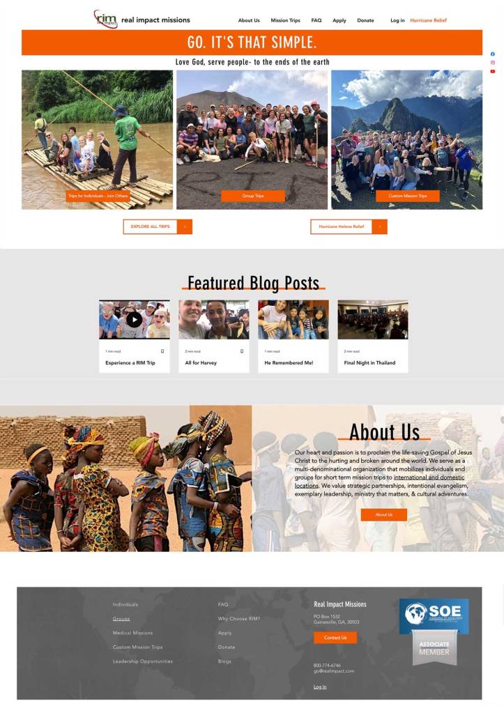 While working for Real Impact Missions, part of my regular responsibilities have included maintaining and enhancing the organization’s website, making changes when pages need to be updated, and striving to improve our web presence. In 2020, RIM transitioned its website hosting from WordPress to Wix, and I played a key role in crafting the new layout, functionality, and branding for the website. Below are some of the various pages I helped build.